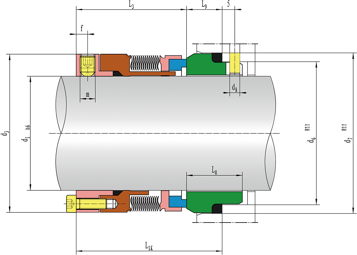 动环(Rotary Ring): A,Q1,Q2,U1,U2 静环(Seat Ring):Q1,Q2,U1,U2 辅助密封(Secondary Seal):G 弹簧及结构件(Spring and Metal Parts):G,M