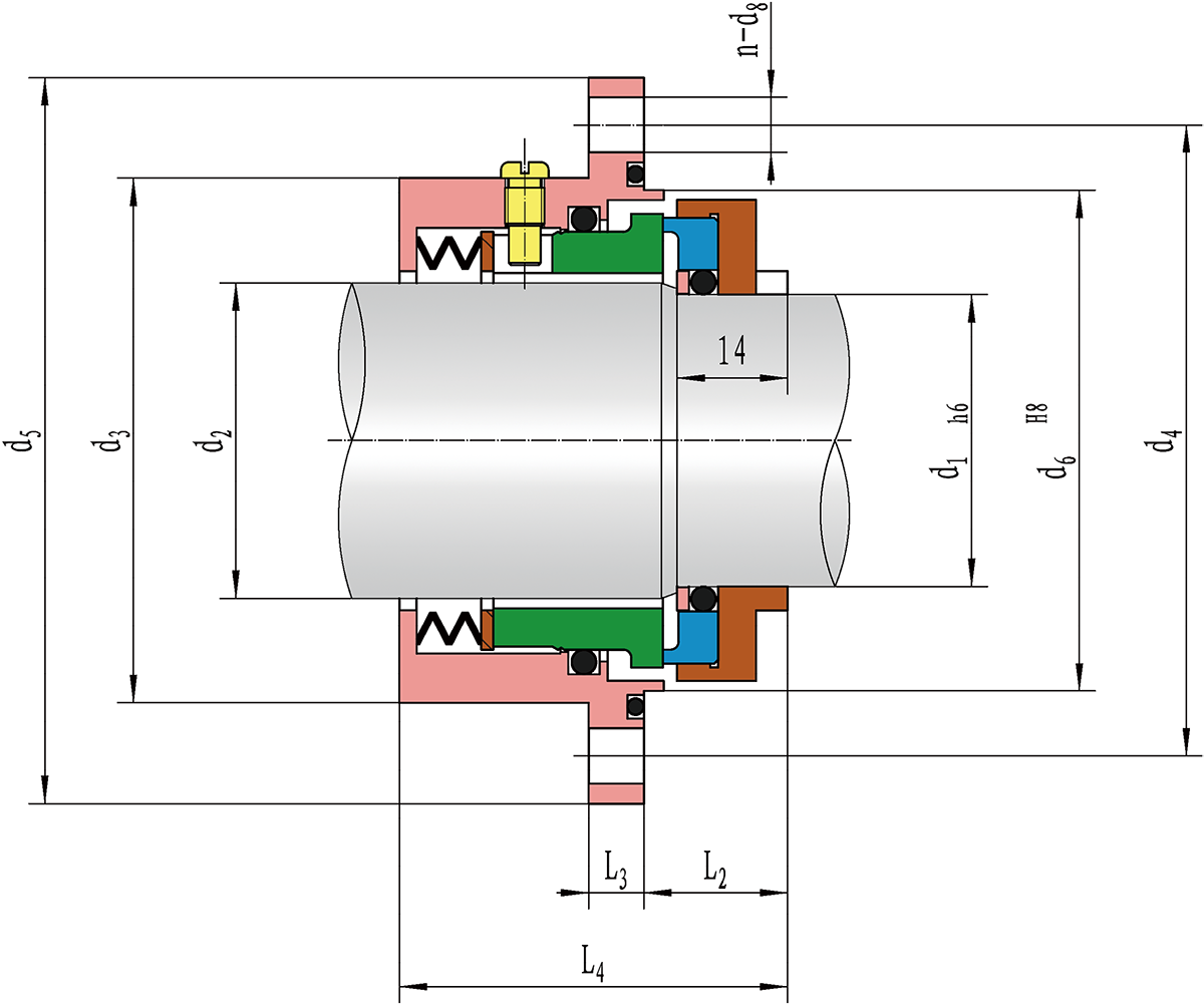 动环(Rotary Ring): Q1,Q2,U1 静环(Seat Ring):Q1,Q2,U1,A 辅助密封(Secondary Seal):E,V,S,M2,M5 弹簧及结构件(Spring and Metal Parts):G,M