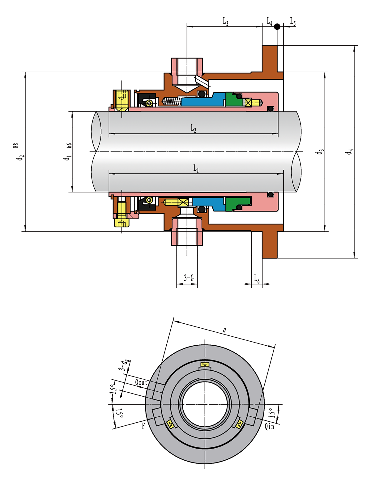 动环(Rotary Ring): Q1,Q2,A 静环(Seat Ring): Q1,Q2,A 辅助密封(Secondary Seal):V,K,M1,M2 弹簧及结构件(Spring and Metal Parts):G,M